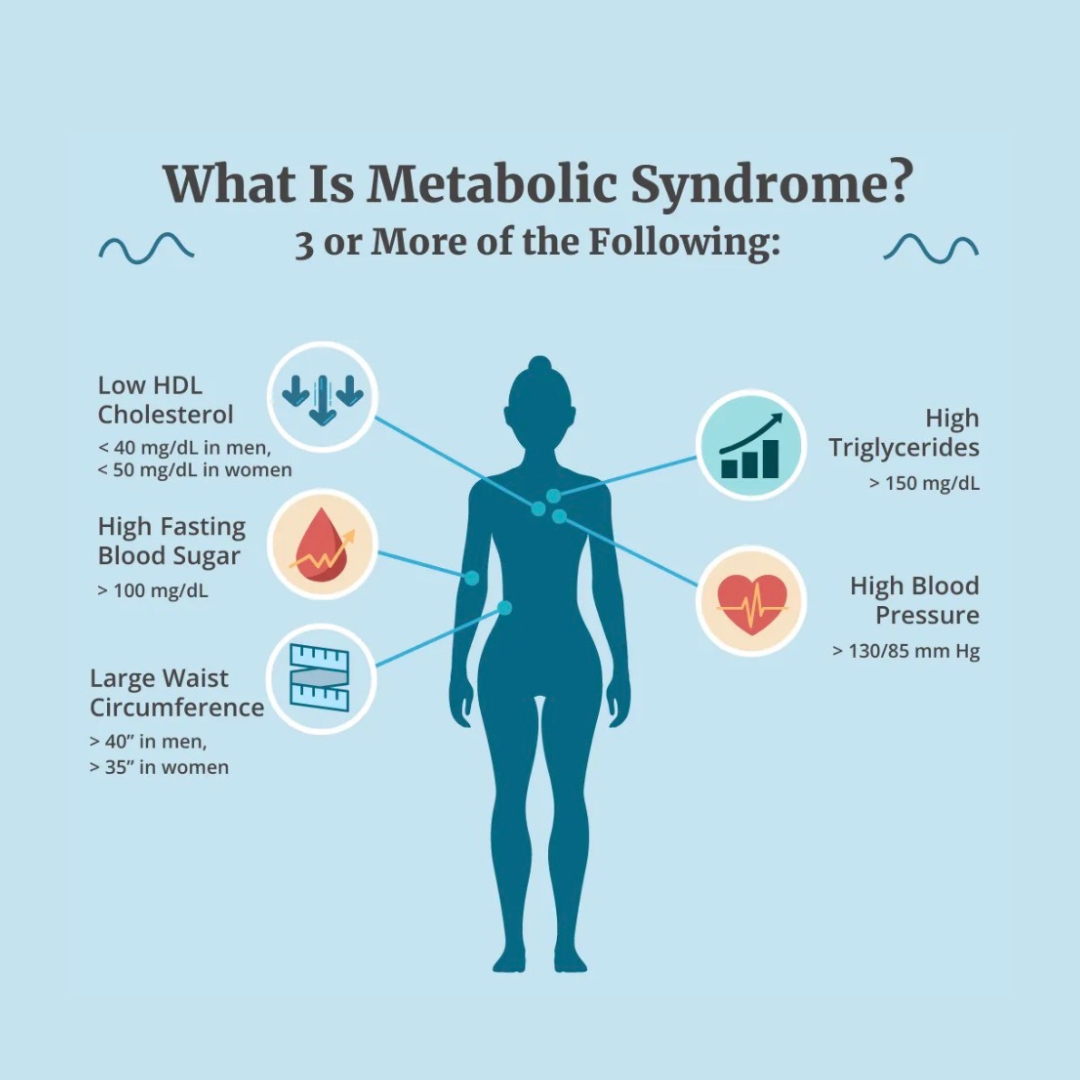Stress alone can drive Metabolic Syndrome. Studies show individuals under high stress have a 45% higher risk of developing MetS. Stress reduction doesn’t need to be time-consuming — even one minute of mindfulness can shift the nervous system. Limiting exposure to news and social media is also crucial.