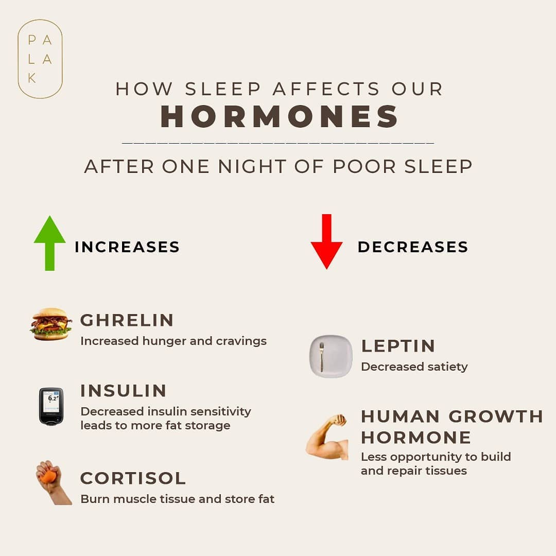Getting adequate sleep is important for regulating a number of hormones and just one night of poor sleep has a significantly negative impact on hormones, like leptin, insulin, cortisol, and others.